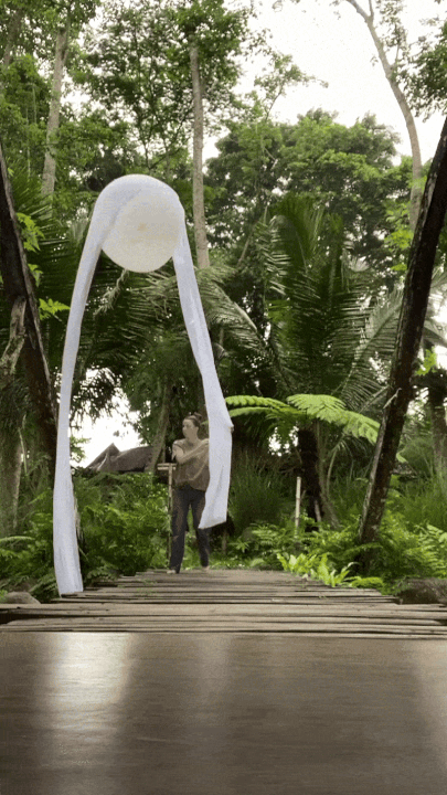 Familial Entanglement took place in the rice fields close to where I grew up, as a performance, experiment, and ephemeral installation. My parents and siblings wrestled with the balloons on the precipitous rice terraces, while their grandchildren anchored them from the silky mud below.